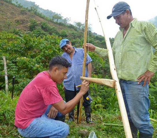 We teach every farmer who joins our projects to make these A-frames which allow them to work out where the contours lie on their land so they can plant their Inga alleys on contour to prevent erosion. They are simple to use and easily made with materials every family has to hand.