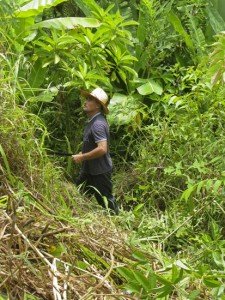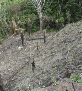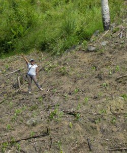 The path up to this La Muralla passes field after field of slashed and burnt land just like this. But local farmer Pablo planting