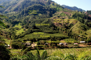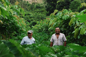 Here is a great image of Luis and Abraham amongst a healthy crop of Malanga (Colocasia esculenta) between the Inga Alleys. This is the