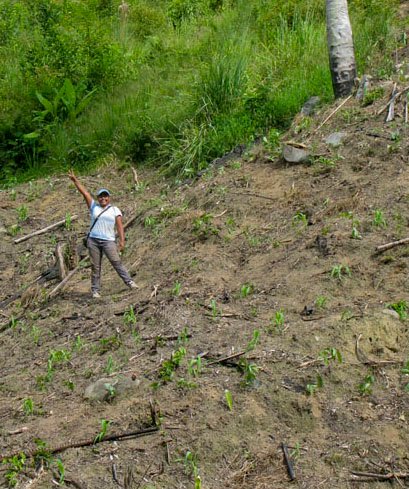 Lovely bubbly Carla, one of the young people from Las Mangas community who came to help us with our work today, injecting some extra enthusiasm and giving her opinion on Inga alley cropping.
